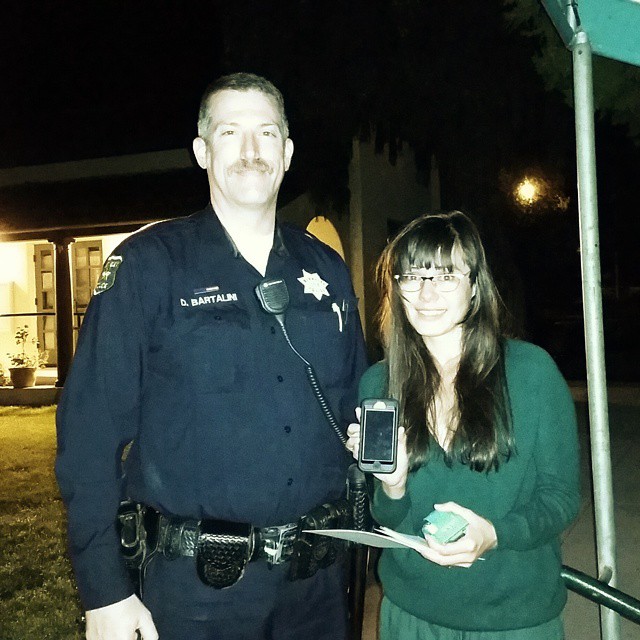 *Since our post on facebook everyone and their mom has been wondering what happened.  So when we arrived at the senior citizen residence the police asked us what we wanted to do.  We didn’t really know, so we showed them where the phone was on the map.  One officer decided to go solo and try to find the phone.  Then, one of the officers, Hunt had a brilliant idea and decided to have Cat log on into his iphone through Find My Iphone app.   That way he could just trigger the phone to make an alert, and they would just follow the sound.  By this time, all of the officers went looking for the phone.  This was about 9:45pm.  We kept waiting and waiting.  45 minutes had past.  We were a bit worried.  I kept checking on my phone, and all of sudden the location kept jumping around.  What’s going on?  Soon enough, we see a young male walk out of the building.  I was hoping he was gonna come out and give us Cat’s phone.  Unfortunately, he had no clue what was going on, he was just working there maintaining the facility.  Finally, one of the officers came out of the building.  He gave us a thumbs up!  We were kind of happy, but confused at the same time.  He told us they found the phone on the 3rd floor in the room of very senile man who apparently had a mid western accident.  The phone was found by the man near the post office near our house.  So we think Cat must of left it on the counter there and the man picked it up for some odd reason.  The officer told us that the man had no clue how to operate the phone, and that it just kept ringing and beeping, and he didn’t know what to do.  He must have been really senile.
